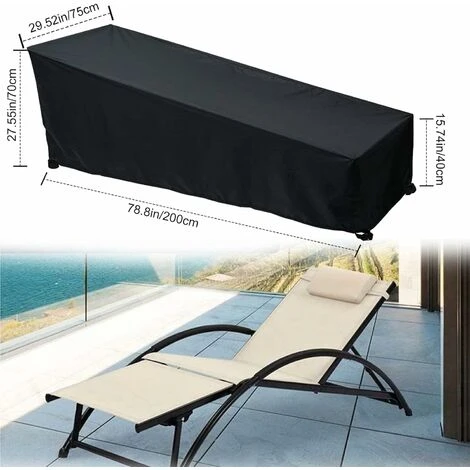 【Imperméable Durable】Fabriqué en tissu polyester durable avec doublure en PVC, qui protège votre chaise longue de la pluie, de la poussière, du vent, du soleil, des feuilles, des déjections d’oiseaux, des insectes, etc. Il a des fonctions anti-ultraviolettes, résistantes à la déchirure et à la décoloration. La housse chaise longue jardin est utilisée au fil des saisons.
