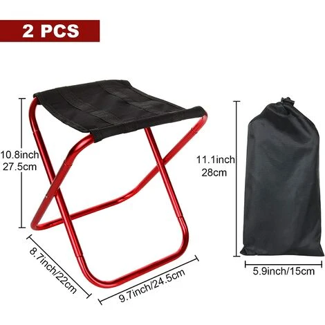 What You Will Get: Two red portable folding stools, 2* Oxford storage bags. The size is 24.8 x 22.5 x 27 cm/9.8 x 8.9 x 10.6 inches, small size and light weight. You can put it in a drawstring bag, which saves a lot of space.