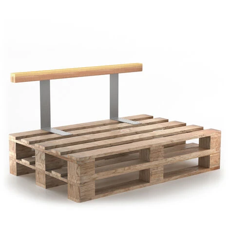 - Les éléments de dossier et d’accoudoir sont directement fixés sur la palette à l’aide de deux équerres en acier.