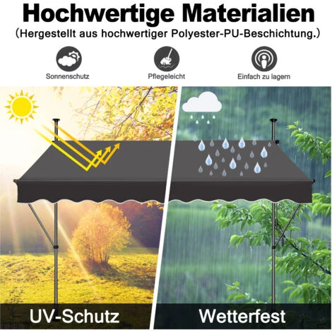 – Ce store imperméable et anti-salissures, fabriqué avec une housse en polyester PU de haute qualité, offre une protection contre le soleil et le vent et, avec un facteur de protection UV de 30+, vous pouvez vous détendre sur votre balcon ou votre terrasse.