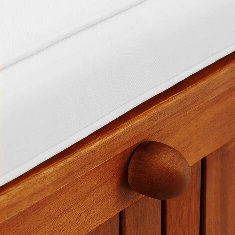 De plus, le banc a un compartiment de rangement très pratique. Utilisez l’espace supplémentaire de rangement sous l’assise pour stocker vos coussins en toute sécurité le soir ou pour protéger vos boissons du soleil. Les jouets et les ustensiles de jardin y trouvent également leur place et le jardin ou la terrasse restent toujours bien rangés.