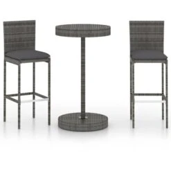 Ensemble De Bar De Jardin 3 Pcs Et Coussins Résine Tressée Gris VidaXL