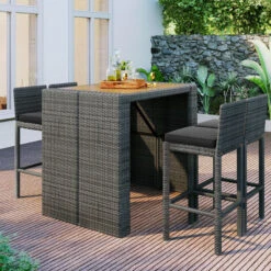 Table De Bar De Jardin Gris 140,5×60,5×110,5 Cm Résine Tressée