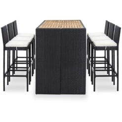 Meuble De Bar De Jardin 7 Pcs Et Coussins Résine Tressée Marron VidaXL