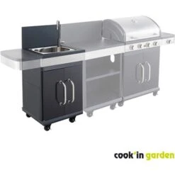 COOK’IN GARDEN Desserte De Jardin Avec Crédence Pour Plancha – 110 X 55 Cm – Noir