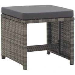Hommoo Tabourets De Jardin 2 Pcs Et Coussins Resine Tressee Anthracite