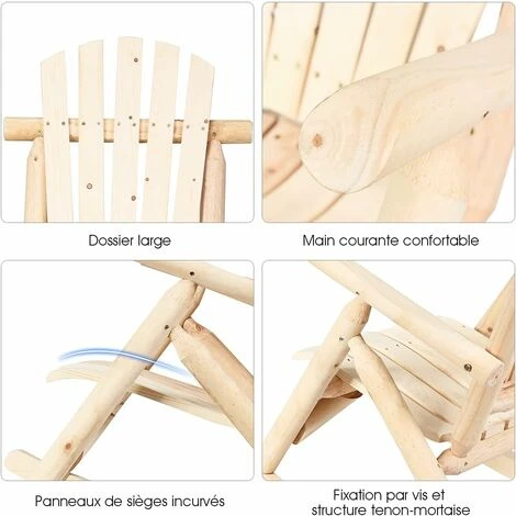 - Elle sera certainement la bienvenue après une journée de travail. Fabriquée en bois naturel de pin et de sapin, elle sera assez stable et solide pour une utilisation à long terme. Le style naturel saura vous inciter à la relaxation. L’angle de basculement est étudié pour une utilisation en toute sécurité.