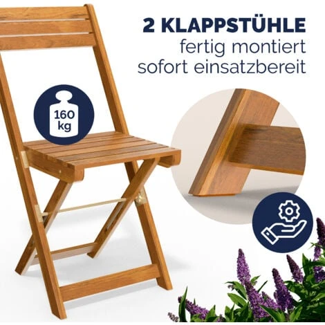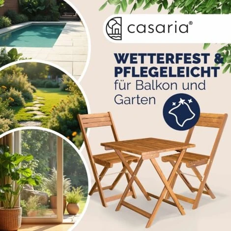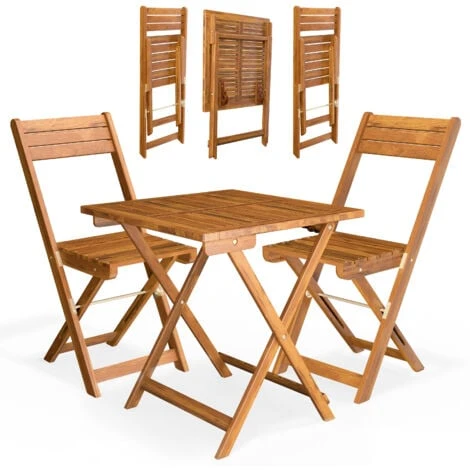 L’ensemble en bois d’acacia est pliable et ainsi facile à ranger. Vous