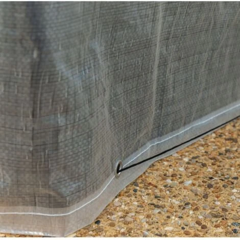 Description détaillée du produit: – produit: housse de protection – marque: Werkapro – utilisation: protection mobilier de jardin – matière: polyéthylène – dimensions totales: 310 x 150 x 80 cm – grammage: 90 g/m2 – couleur: translucide – forme: rectangulaire – caractéristique: étanche – caractéristique: imputrescible – caractéristique: traité anti UV Housse pour 8 chaises avec 10 oeillets en aluminium et un cordon pour maintenir la housse. Dimensions et poids, tolérance 5%