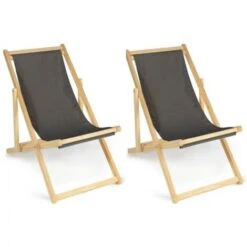 Lot De 2 Chaises Longues Pliantes Chilienne Bois Toile Gris Anthracite