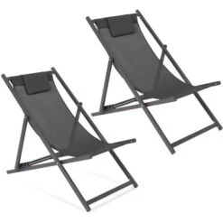 Lot De 2 Chiliennes LOTA En Acier Et Toile Textilène Gris Anthracite