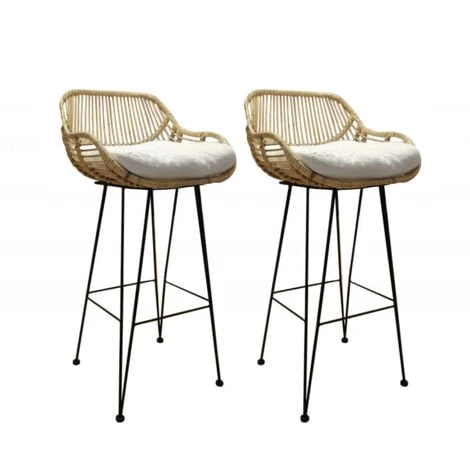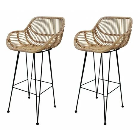 Chaise haute de bar en rotin, un matériau naturel, solide, léger, résistant et imputrescible. Piétement stable en métal noir.