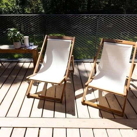 Lot de 2 transats Fidgi en acacia écru