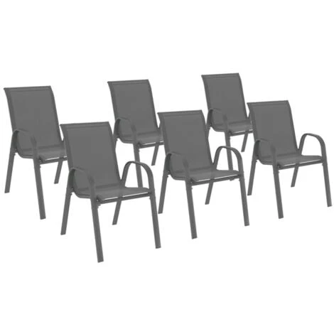 Lot De 6 Chaises De Jardin LYMA Métal Et Textilène Empilables Gris Anthracite