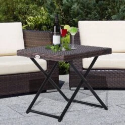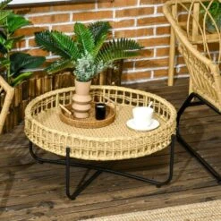 OUTSUNNY Table Basse De Jardin Plateau Verre Trempé 5 Mm Résine Tressée Imitation Rotin Noir