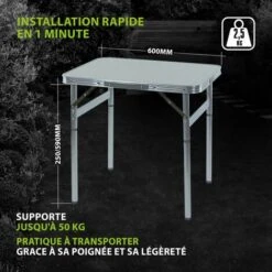 Table à Lattes De Camping – O’Camp – Housse De Transport Inclus – Dimensions : 70 X 70 X 70 Cm