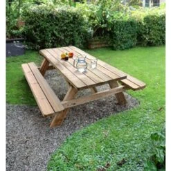 Table Pique-nique Bois Naturel Traité Gardiun Essential 165x154x75 Cm 6-8 Personnes