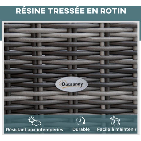 – Structure robuste en métal époxy anticorrosion et revêtement en résine tressée imitation rotin : matériaux de qualité résistant aux rayons UV, à l’humidité et ne nécessitant pas d’entretien particulier