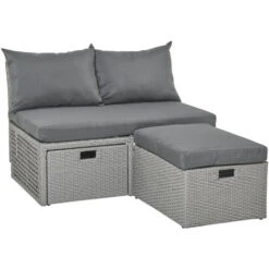 – Ensemble salon de jardin 3 pièces composé d’un canapé 2 places, d’un pouf et d’un coffre de rangement très pratique pour ranger vos coussins