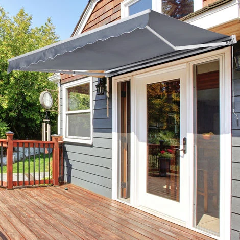 – Store banne manuel rétractable avec ouverture fermeture via manivelle située à droite (store de dos)