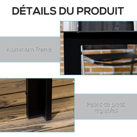 – Structure en aluminium à la fois légère et résistante pour une longévité prolongée avec plateau verre trempé 5 mm