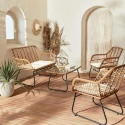 Salon De Jardin En Résine Pour 4 Personnes – Torino Naturel / Beige