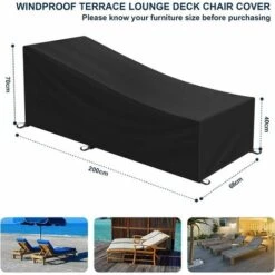 Housse De Chaise Longue Imperméable Housse Bain De Soleil Tissu Oxford 210D Noir (200x68x40/70CM)