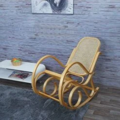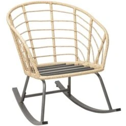 Fauteuil Ă Bascule,chaise De Chambre Terrasse En RĂ©sine TressĂ©e Avec Coussin,Beige – Mondeer