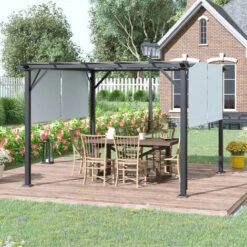 Pergola Coulissante 2 Pans 3×4 M BelvĂ©dère De Jardin Toile Gris Anthracite