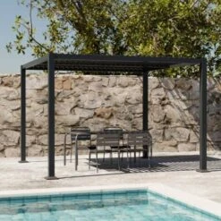 Pergola Bioclimatique Anthracite. Aluminium Et Acier. 3x3m. Lames Orientables