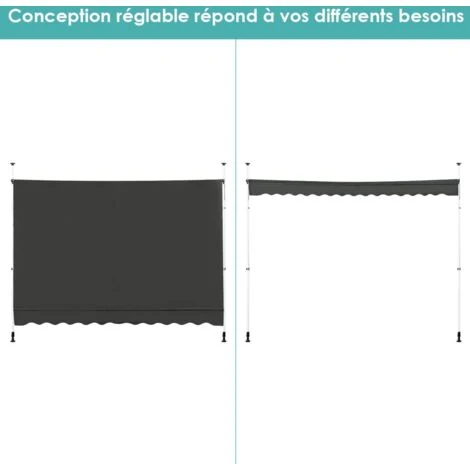 - ★REGLAGE FLEXIBLE DE L’HAUTEUR★ L’auvent extérieur est réglable entre 200cm et 300cm pour vous permettre d’ajuster facilement l’angle en fonction des conditions météorologiques réelles afin d’obtenir le meilleur effet d’abri. Le store réglable vous protège des rayons directs du soleil ou de la pluie.