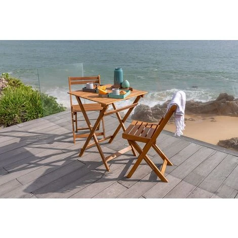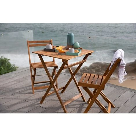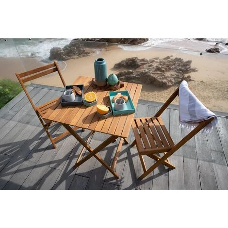 Ce salon de jardin bistro, idéal pour les petits espaces vous apportera une touche nature à votre extérieur. Vous pourrez créer presque partout un coin repas pour diner ou partager des moments à deux. La table et les chaises peuvent être pliées pour faciliter le rangement. Le salon est composé d’une table et 2 chaises.