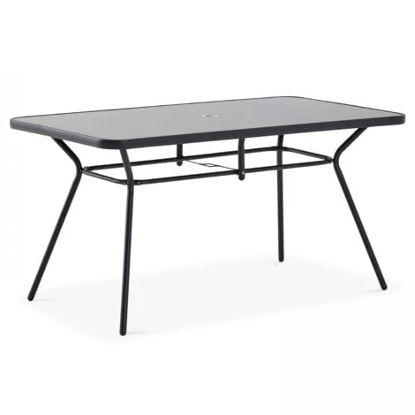Ensemble table et 6 chaises de jardin pliants + parasol droit – structure acier avec finition peinture Ă©poxy anti rouille – Table de dimensions 140x80x70 cm – Parasol de 2 mètres de diamètre