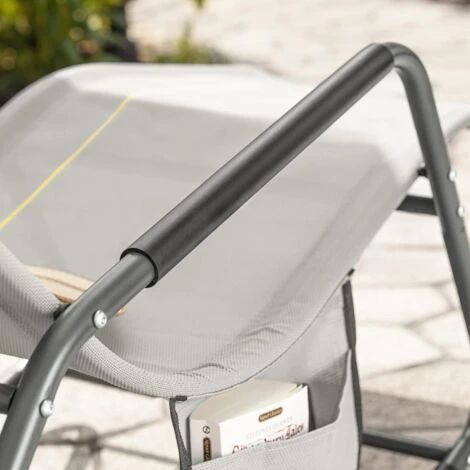 SoBuy OGS47-HG Fauteuil à Bascule Transat De Relaxation Chaise Longue Bain De Soleil Rocking Chair – Avec Pochette Latérale Et Repose-Pieds