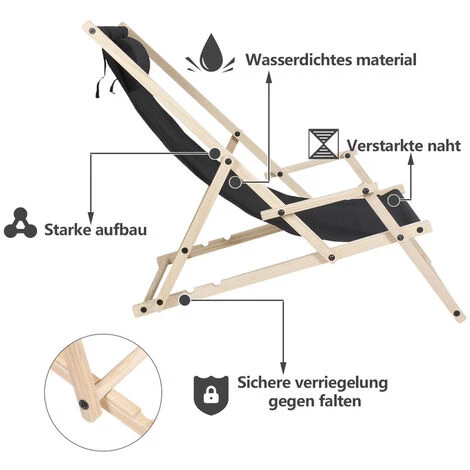 – La chaise longue en bois de pin de haute qualité assure une structure plus stable, une surface lisse, est sûre et robuste, résistante aux intempéries et étanche, peut être utilisée en permanence même en cas de pluie, le tissu Oxford durable et lavable