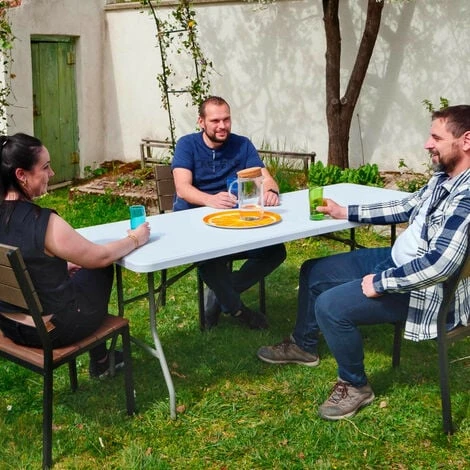 Découvrez la table pliante jardin, idéale pour tout type de terrasse. Facilement transportable par ces poignées, la table de jardin vous suivra partout lors de vos sorties pique-nique et camping. Pliable, elle vous sera très utile si vous possédez une petite terrasse, un balcon, là où la place est limitée. La table pliante peut accueillir jusqu’à 8 personnes, alors profitez dès maintenant d’un bon repas en famille ou entre amis!