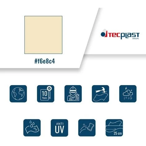 Autre point fort de cette toile ivoire : sa facilité de pose grâce à son ourlet périphérique de 50 mm et ses oeillets tous les 250 mm.