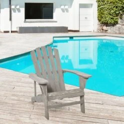 OUTSUNNY Fauteuil De Jardin Adirondack Dim. 78L X 89P X 88H Cm Bois Massif Sapin Gris Effet Vieilli
