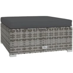 Repose-pied De Jardin Et Coussin Gris 70x70x30cm Résine Tressée