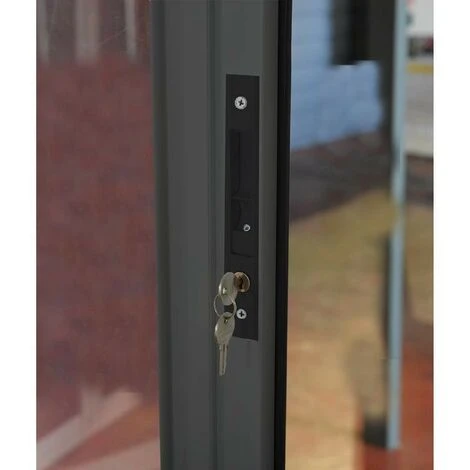 La véranda est équipée de 3 doubles portes verrouillables coulissantes. Facile à monter, elle est livrée avec base et gouttière incluse. La garantie est de 10 ans.