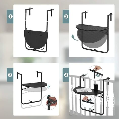 -Grâce au design de suspension et de pliage. la table de balcon est facile à replier sans occuper pas de place au sol.